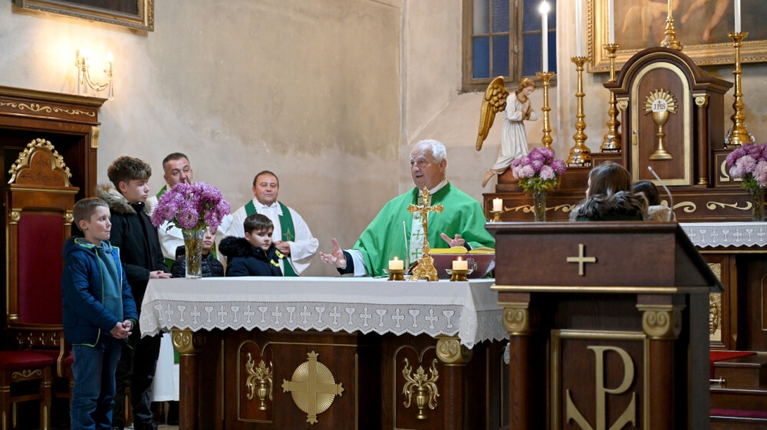 Sedamdesetogodišnjaci su slavlje započeli sudjelovanjem na Svetoj misi u crkvi Marijina uznesenja u Karaševu. Velečasni Milja Sima, i sam među slavljenicima ove okrugle godišnjice, u toploj propovijedi poželio je svima da se raduju godinama koje su pred njima, zahvalni za one koje su već proživjeli. Obraćajući se okupljenima, velečasni je rekao: „Drage dinerice, dragi dineri, danas smo se sastali da proslavimo zajedno 70 godina otkad naša starešina nim je dala život. Da zahvalimo Bogu za ove godine koje su prošle. Svaki put se žalimo če su prošle odviše živo, onda tražimo od Boga da nekako pridlži ove godine, ali on to ne može. Prije sedamdeset godine smo pošli jednim putem, za kojeg nesmo znali kamo vodi. Sad smo stigli na kraj, na cilj. Ne znamo ješte koliko la da nim da Bog da živimo, ali smo prošli kroz proleće, kroz leto, smo stigli na jesen. I treba da se radujemo što smo stigli da i proslavimo.“